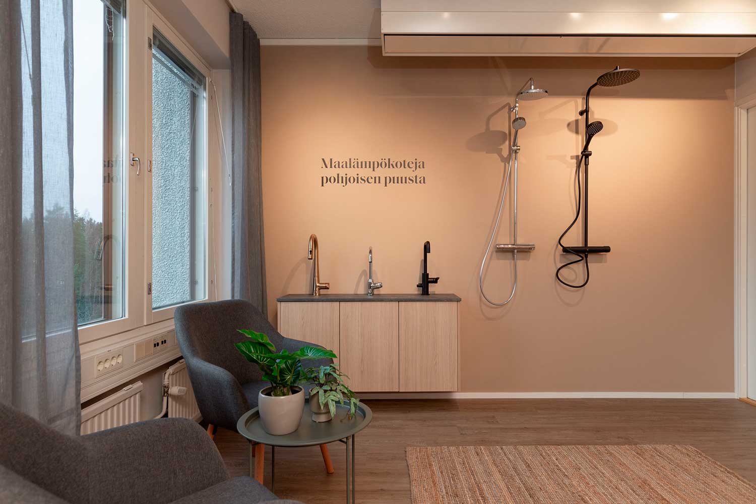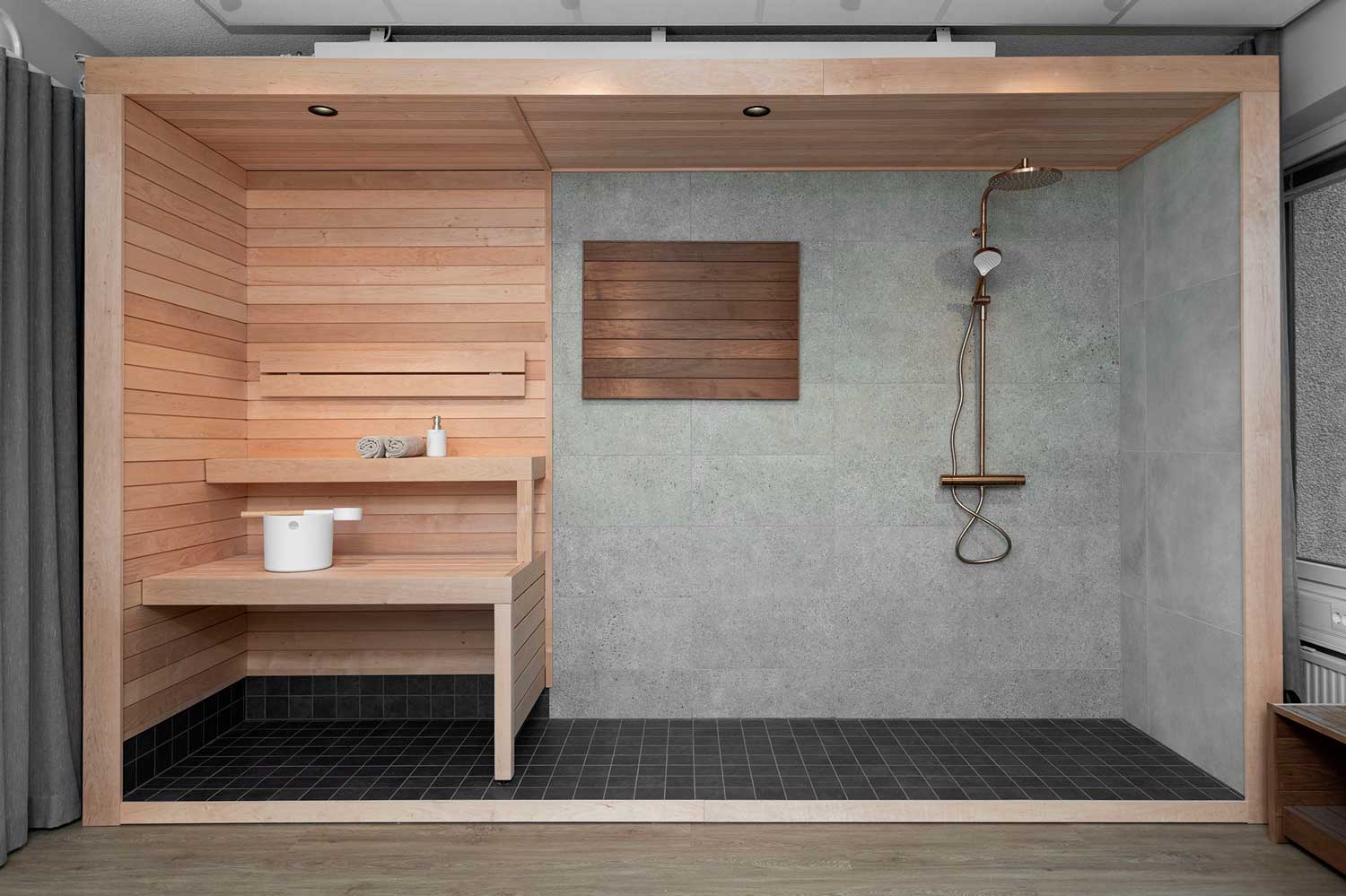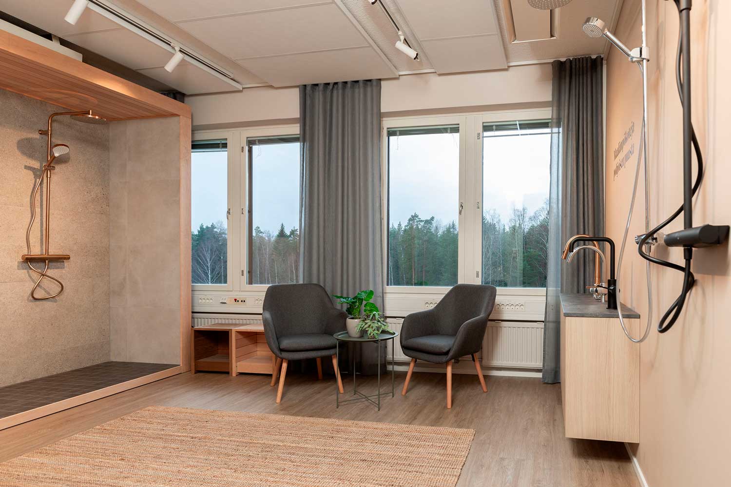 Olas’ showroom also offers the opportunity to explore complete bathroom and sauna setups in true-to-life proportions. You can see different shower and faucet options – as well as a variety of bathroom surface materials presented as ready-made ensembles. These model solutions help you visualize how your choices will look as part of your home, making decisions not only more realistic but also more efficient.