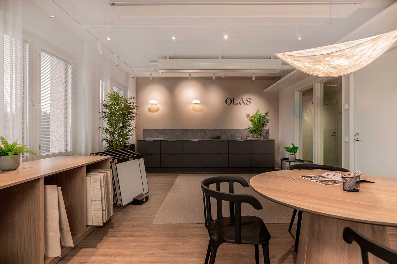 Olas’ new showroom has been designed to offer our customers an inspiring and practical space for making choices for their new home. Here you can explore tried-and-tested surface materials and interior design options that combine timeless elegance with a contemporary atmosphere.